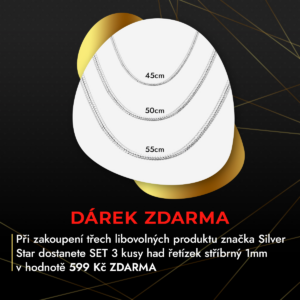 Při zakoupení 3 libovolných produktů značky Silver Star od nás získáte zdarma elegantní set dámských řetízků v délce 45 cm, 50 cm a 55 cm, s tloušťkou 1 mm, v hodnotě 599 Kč.